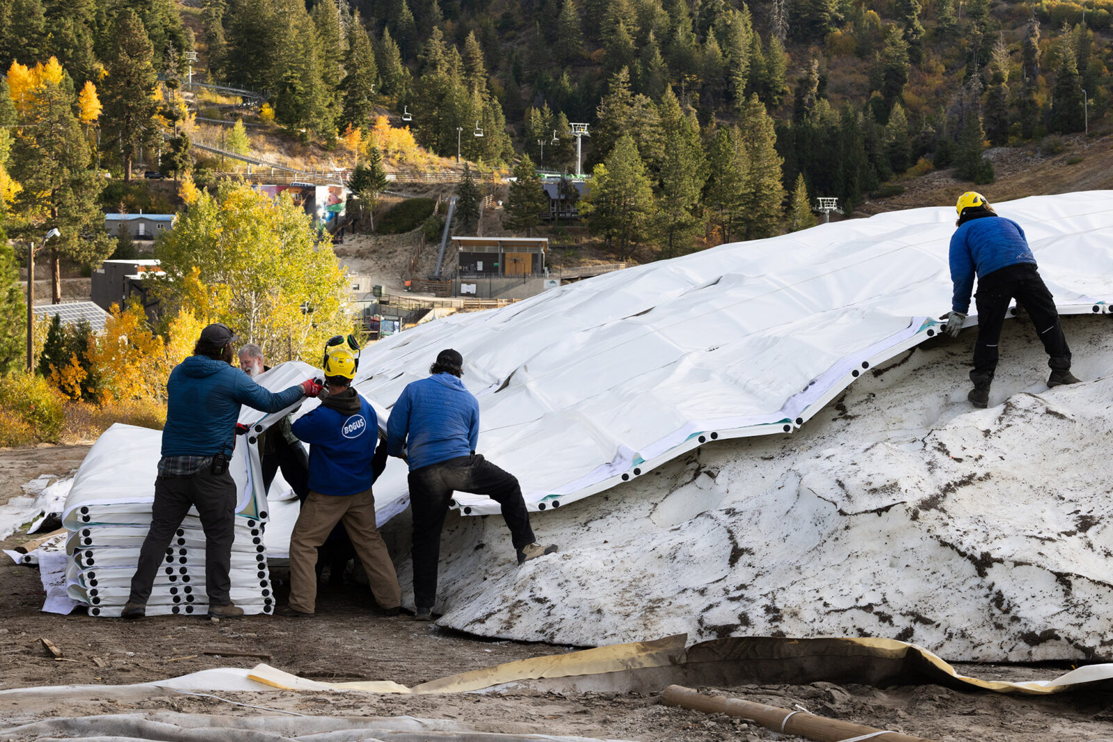 Bogus Basin’s mountain operations team members remove the insulated cover on October 9th, 2025.