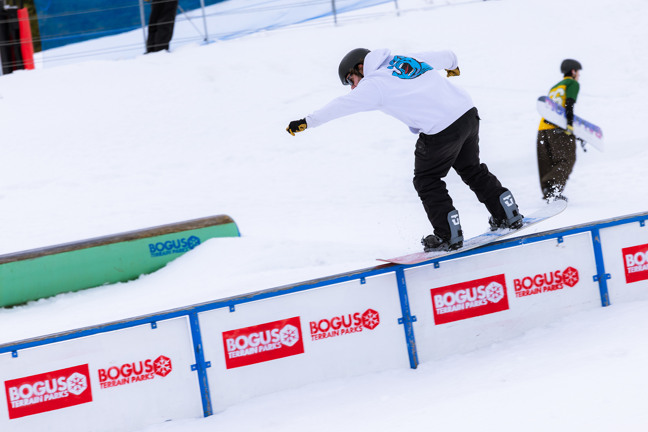 The Mountain Experience team set up three pocket parks with a series of entry-level box features along the Coach’s Corner run for new riders looking to try their first park features.
